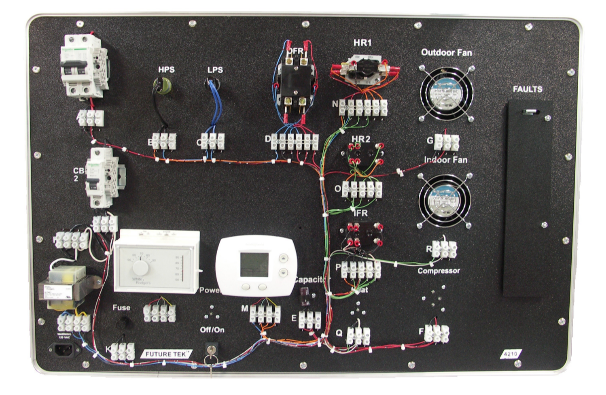Model 4210 HVAC Electrical Troubleshooting Trainer allows 16 concealed, insertable faults to challenge your students